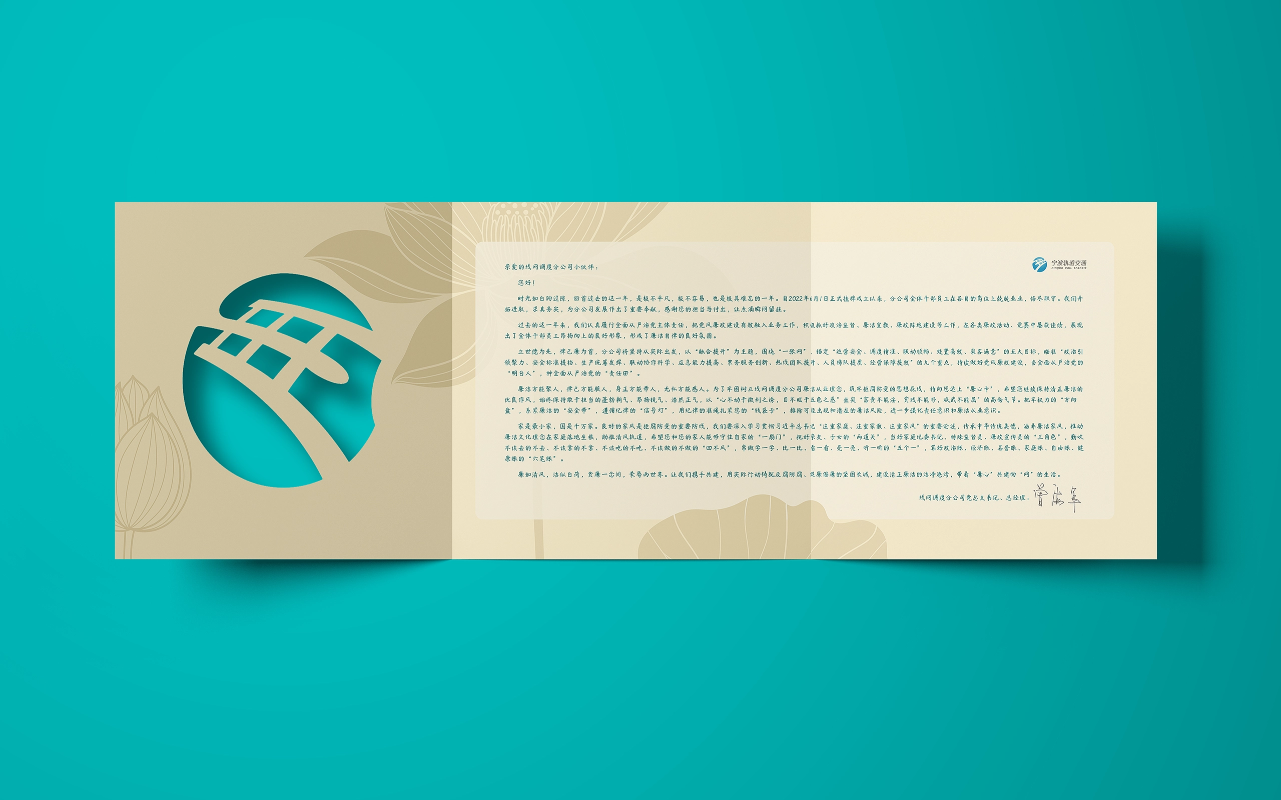 The design theme draws inspiration from the metaphor “integrity is like a breeze, purity like a lotus.” The cover features a die-cut of the Ningbo Rail Transit logo, subtly revealing an inner illustration of a lotus flower through the folded panels. This layered effect implies that integrity, though often unseen, should be internalized and reflected outward in action.